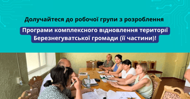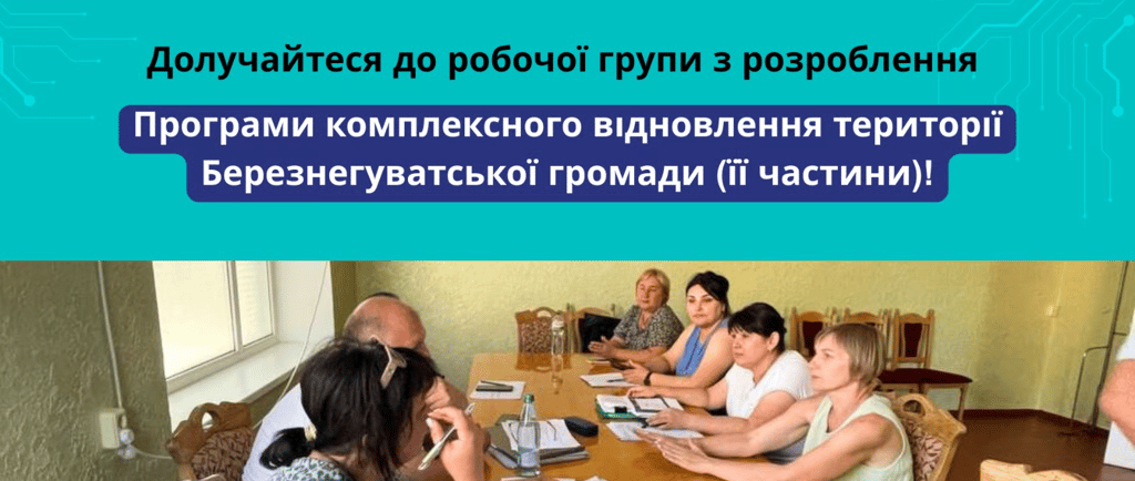 Березнегуватська селищна рада запрошує долучитися до робочої групи з розроблення Програми комплексного відновлення території Березнегуватської громади (її частини)