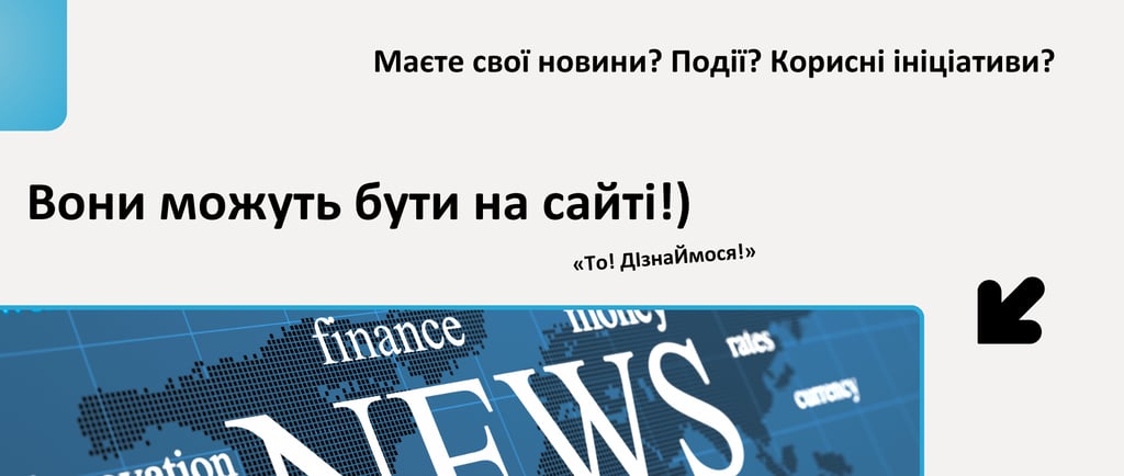 Кожен мешканець громади може додати свою публікацію на сайт «ТО!ДІЗНАЙМОСЯ»!