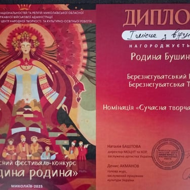 У результаті родина Бушиних здобула І місце з відзнакою у номінації «Сучасна творча родина», підтвердивши високий рівень мистецької майстерності нашої громади.